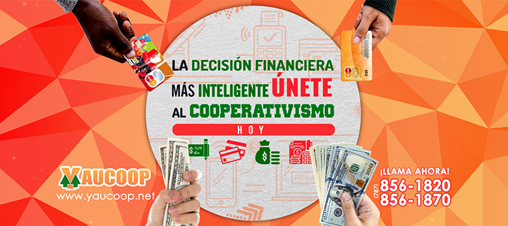En Yaucoop somos gente dedicada y profesional en quienes puedes confiar. Como socio y dueño siempre recibes los servicios y productos de la más alta calidad. No esperes más, ¡hazte socio hoy! Visita nuestra web: yaucoop.net y llena tu solicitud. Acciones y depósitos asegurados hasta $250,000 por COSSEC, no por ninguna agencia federal. NMLS# 790316